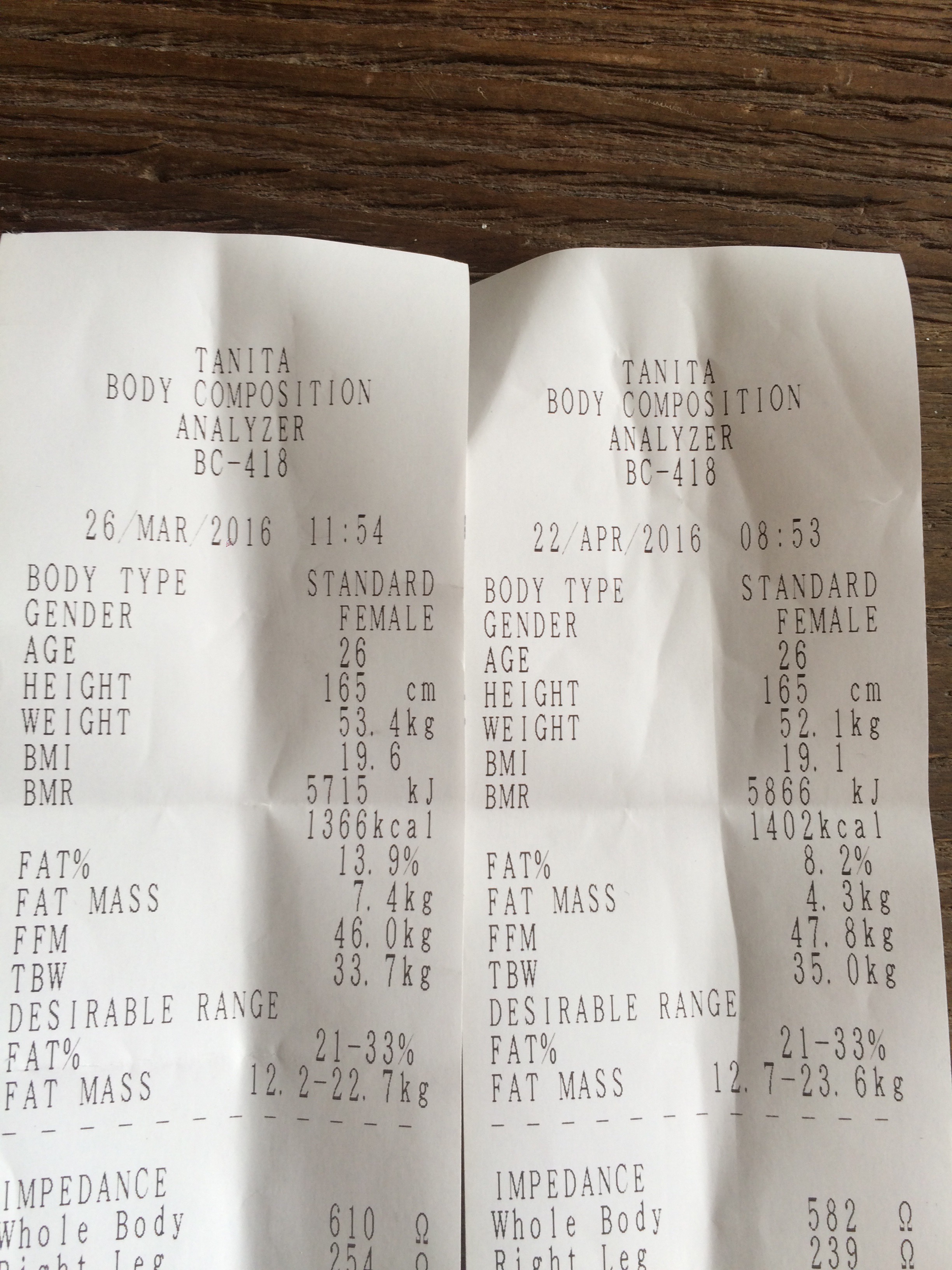 1,3 kg i vikt! Samt att fettprocenten minskade kraftigt.