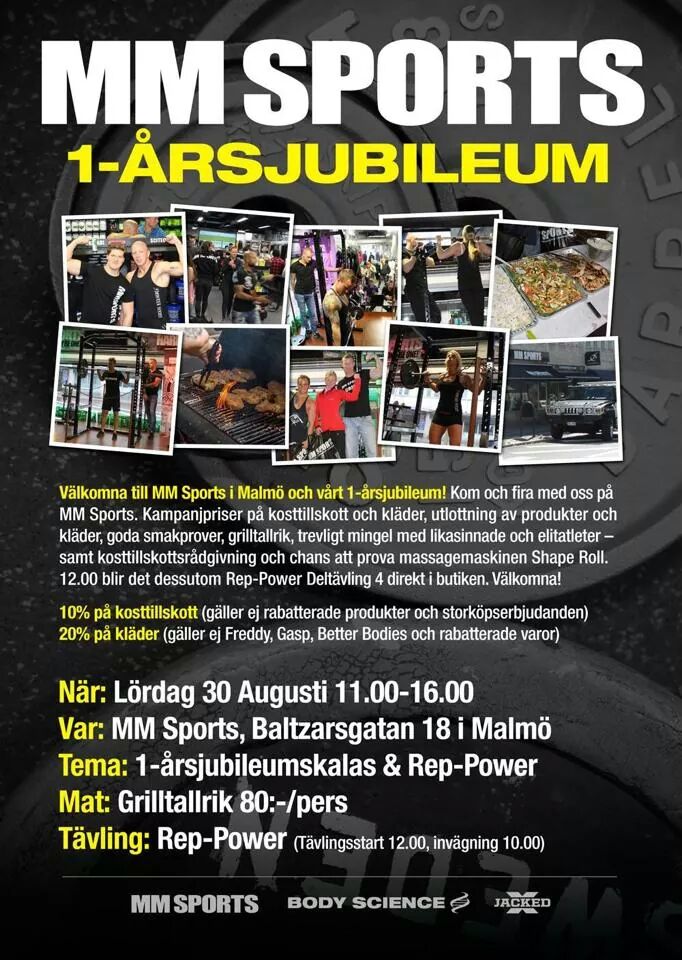 Nästa lördag, den 30/8 firar MMSports butiken i Malmö, blir en sväng in om för att köpa lite bars och kolla in Rep power! Missa INTE detta 🙂