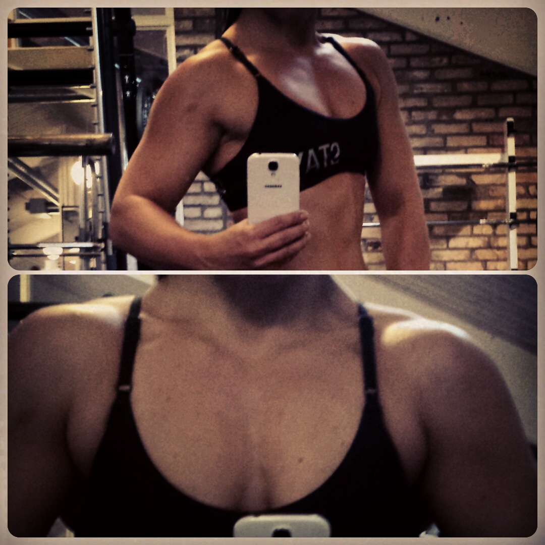 Bussen hem tog över 1h eftersom man asfalterar utanför mobilia och jag kom i värsta rusningstrafiken. Hem och slänga i mig riskakor och pwo…och gymmet äntrades strax efter 18. Jag har alltid föredragit att träna på morgonen, men så har jag oxå alltid jobbat butikstider samt sluppit pendla eller pluggat, så jag har alltid kört morgon- eller förmiddagspass definitivt inte senare än 16 så detta blir något nytt. Men som ett bevis på att den nya rutinen funkar och att jag hittat rätt rutiner kostmässigt redan fick jag till ett riktigt jäkla bra pass! Tung vecka , ökade i allt, bra kontakt och ett galet tryck i kroppen 🙂 syns kanske inte sp bra på bild men överkroppen hade ett jäkla tryck! Och igår hade jag en jäkla träningsvärk som motarbetades med massage och Linnex 😉