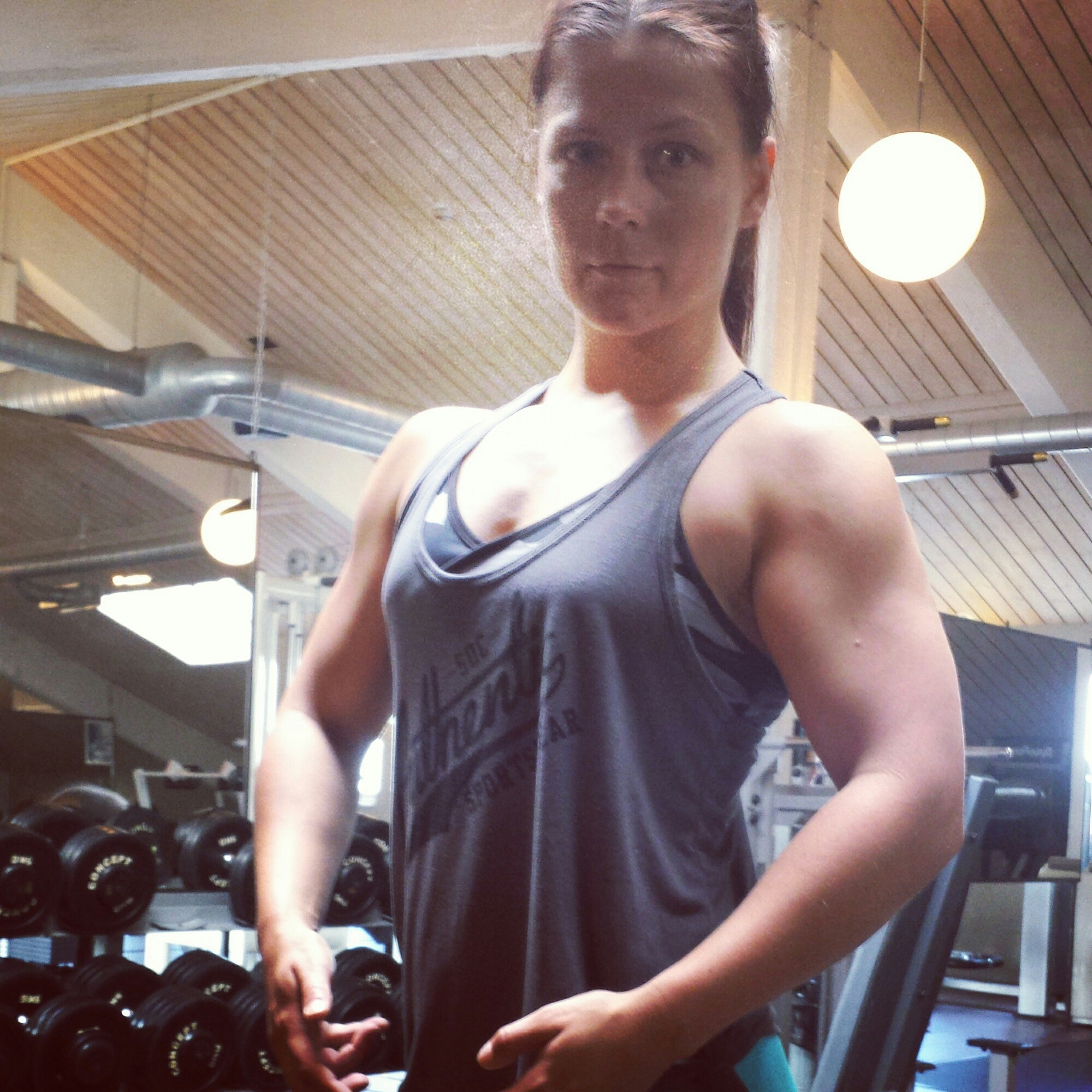 Är så lycklig att jag får göra hantelrodd och sittande hantelpressar på mitt nya upplägg 🙂