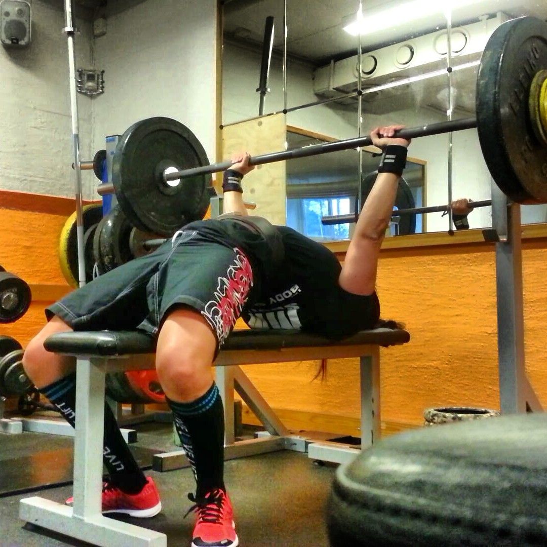 Efter allt snack, presentationer och poseringstränande hann jag även med ett nytt och efterlängtat PB i bänken! Jag har tidigare försökt reppa på 75kg men failat den sista repetitionen.. i måndags på teamträffen satte jag den!! GÖTT!