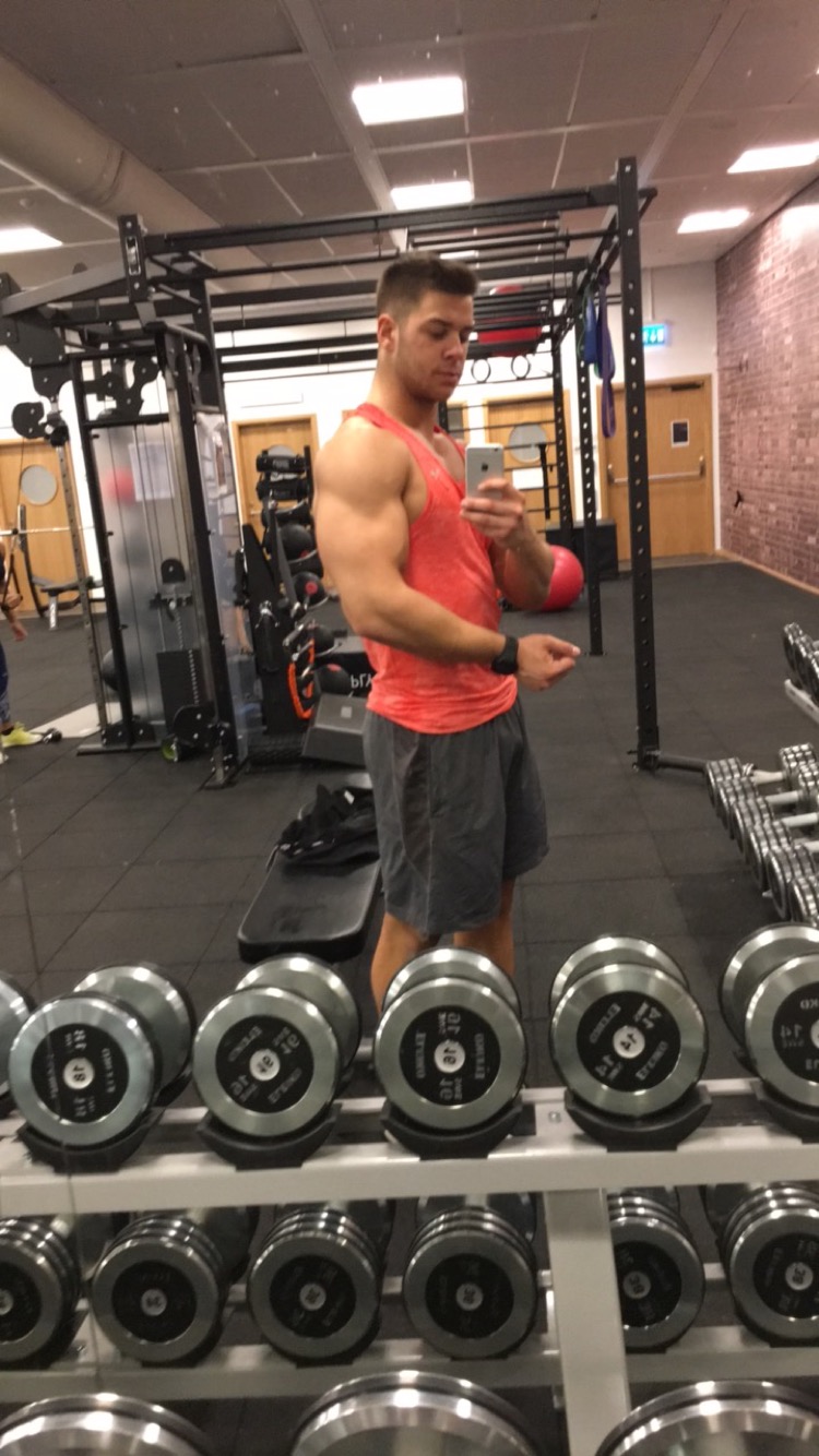 När jag tränar axlar brukar jag ha väldigt högt tempo, vilar mellan 30-50 sec, har oftast med mig min pulsklocka så jag kan hålla koll på tiden. Dem första 2 övningar kör jag alltid tungt, dem så kallade basövningar. Där efter går jag väldigt mycket på kontakt och tänker inte alls på lyfta tungt utan göra övningen rätt och få blodet att pumpa ut i axeln. Även för att undvika skador, vilket är lätt hänt när man tar för tungt. Axlarna vill jag verkligen inte skada, då de kan påverka alla mina andra muskelgrupper, där måste jag vara väldigt försiktig.