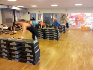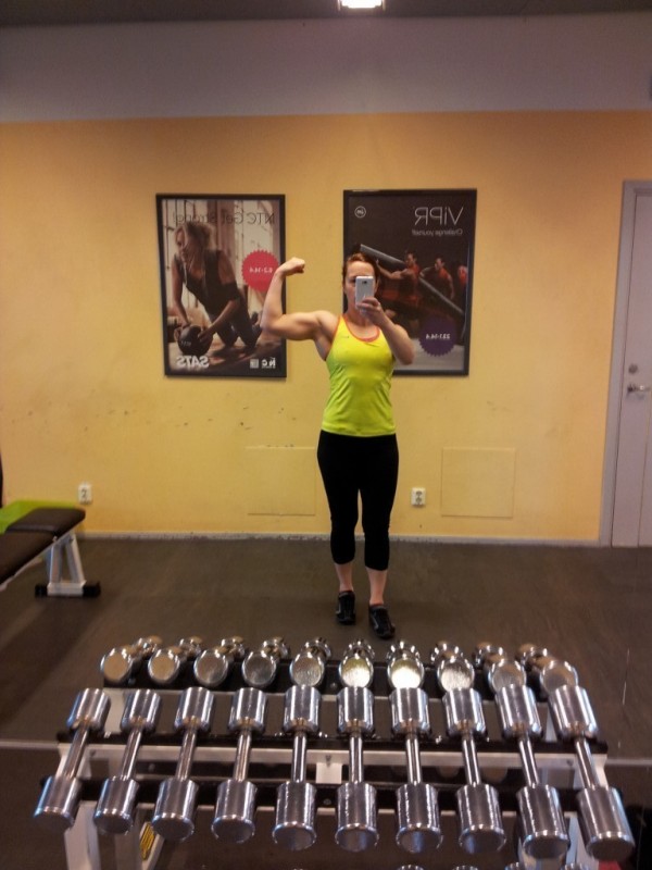 Startade dagen med att glömma mitt ombyte(alltså kläder) i hallen när jag rusar till bussen. SKÖNT väder ute och jag såg samma äldre herre jag brukar se, som promenerar i rask takt samt stannar vid bänkar och räcken och gör armhävningar. Får se till att gå i tid någon söndag och fråga om jag får ta en bild. Inspirerande människa. Väl i gymmet i Vällingby passar jag på att köra lite axlar och biceps i ca 15 min innan min cykelklass. Där var opti-ljus märkte jag och det måste ju utnyttjas i framtiden.