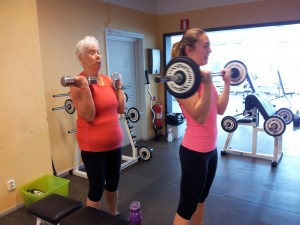 Jag hann även träffa ett par härliga tjejer! Mormor Eva 66 år och Elin 16 år, som tränar tillsammans 2 gånger i veckan. Häftigt!