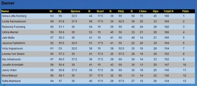 Totalt: 171 reps och rankad 4:a inför finalen.