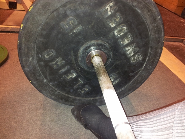 Efter jobbet blev det alltså träning och på morgonen hade jag bestämt vad jag skulle göra och att det inte skulle bli ett så långt pass. Det där brukar gå överstyr ändå såklart men idag avgjorde slumpen. Lätta böjar, eftersom det inte fanns tillgång till passning och marklyft upp till den tänkta ingångsvikten på NM på lördag. Precis när jag gjort det lyftet kommer pastorn och ska låsa lokalerna, så då var det ju bara att packa ihop precis som det var tänkt.