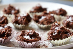 Läs hela inlägget...En favorit som vi gärna gör här hemma till helgen. Enkelt, snabbt och vansinnigt gott! Ingredienser: 2 dl rispuffar, 1 dl gojibär, 1 dl hackade nötter, 2 1/2 dl choklad* & 2 msk tjock kokosmjölk. * använd antingen 2 1/2 dl hackad choklad eller gör egen av kokosolja/kakaosmör. Blanda samman alla torra ingredienser. Smält chokladen och […]