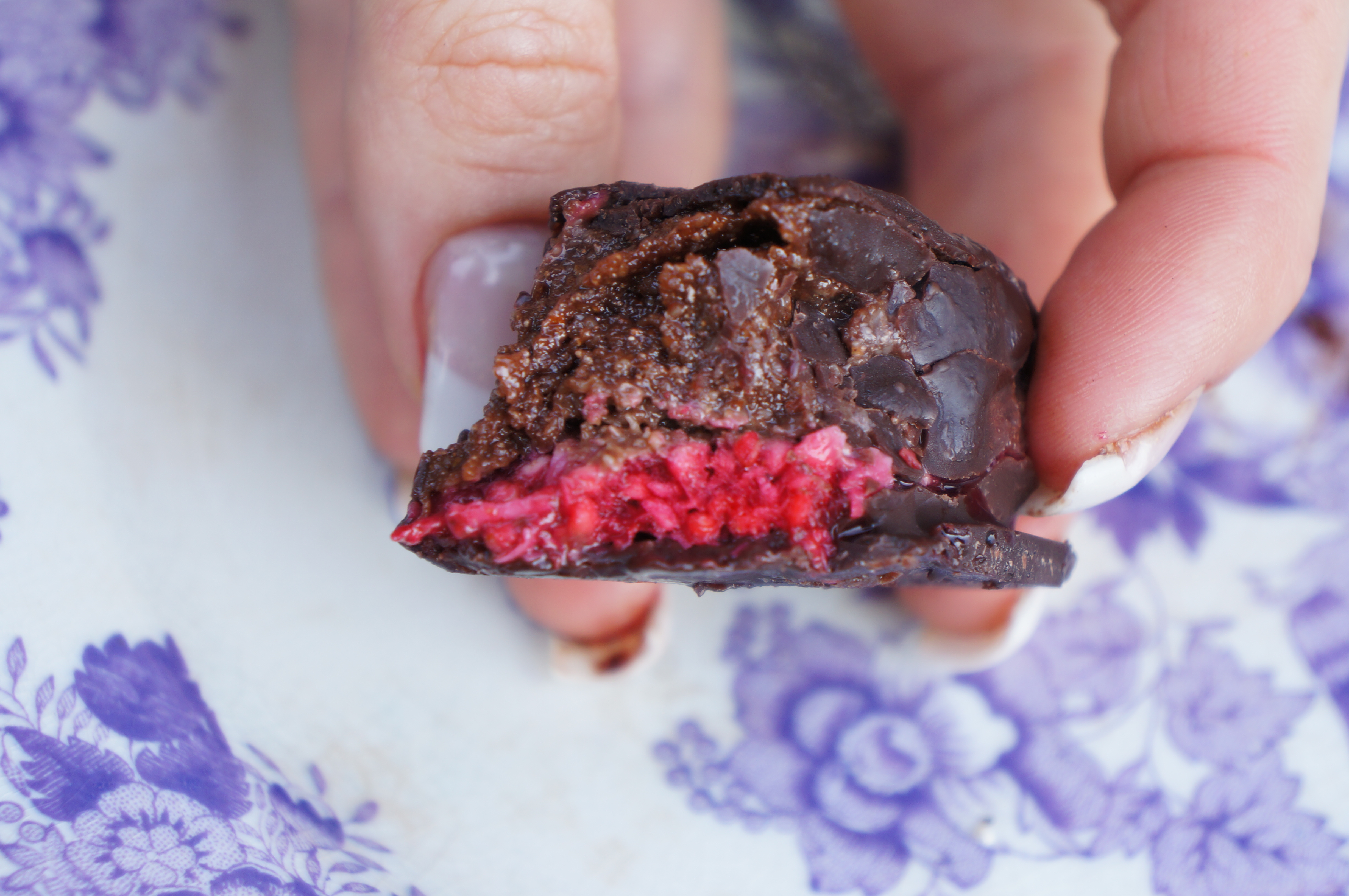 Läs hela inlägget...Här hemma äter vi sällan eller aldrig köpegodis (m det inte är mörk choklad vill säga – choklad är himlen) utan gör det mesta själv. Helst med choklad. Choklad är som sagt himlen! Som dessa ljuvliga hallonbountys! Ingredienser: 2 dl mandel, 2 skopor choklad/jordnötsprotein, 1 msk kakao, 2 msk sukrin gold, 1 dl fibersirap/honung , 2 […]
