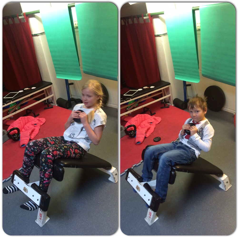 Vi var o körde ett söndags pass idag , vi har riktigt roligt när vi tränar ihop. Blev ett hårt/ tungt axelpass. Barnen var med. Vi hörde flåsande o pustand från där barnen var. Dom brukar alltid var tyst o koncentrerade på var sen ipad. Vi smög oss på dom för se vad dom gjorde… Våra barn är sladdade ! Dom träna dom oxå.