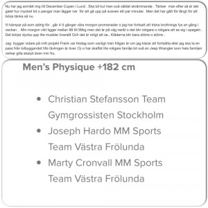 Läs hela inlägget...Börjar närma mig det magiska vikten under 100kg o det tar på mitt psyke . Är man tillräckligt stor till att tävla i år? 1,91 lång o 91kg hård är målet räcker det till vinst i men’s physique. Jag har ca 10kg till att tappa o det är ca två månader kvar till scenen . […]