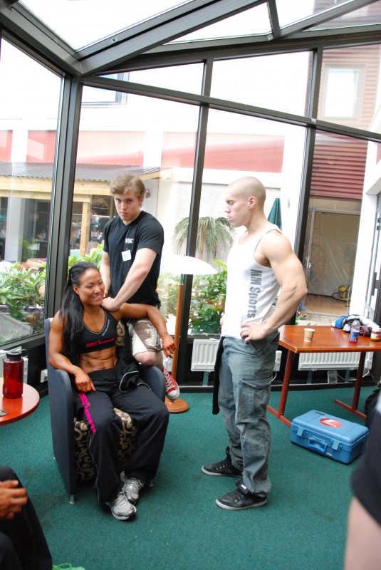 Det gäller att bunkra upp ordentligt med kolhydrater backstage inför tävling, det kan våra tävlande för MMSports, Bodyscience ;O) ( Posera kan våra coacher Peter och Robert åxå som ni ser )