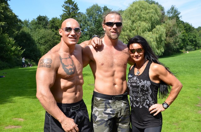 Cissi och Roddy lyste ikapp med solen då de satt och kollade på brännbollen.. Erik ( deltagare i Bodyscience Challenge 2011 ) är även en av utmanarna i höstens Gladiatorerna ( Missa ej att kolla in detta då jag hört att han får galet med stryk;) .. haha ) träffade sina vänner under mer ”vänliga” former 🙂 Snällt av dem att inte mosa dig igen då Erik!