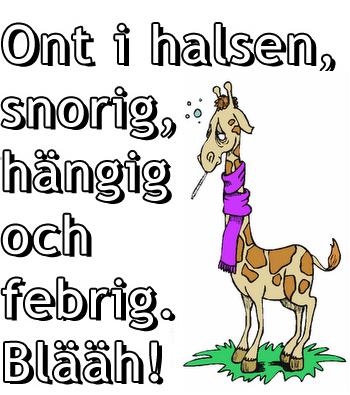 MEN igår på tåget hem igen så börjar jag känna av i halsen! WTF! Inte rättvist! Som sagt, inatt låg jag med en hals som jag helst av allt hade velat skära av pga av smärta. Spottade blod och utvecklade feber! Seriöst… rätt nöjd tjej!
