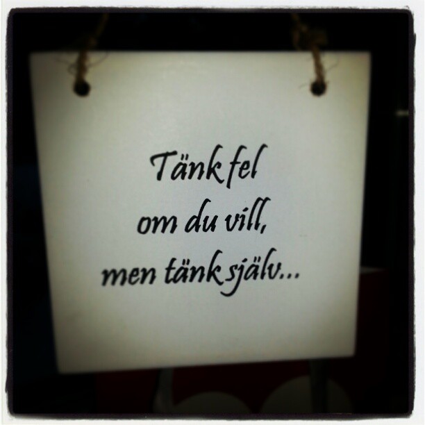Denna söta skylten köpte jag samma dag (fredag) när jag hade en downer, skrattade lite för mig själv och tyckte den passade bra! Det är så, man måste våga testa tro på sina egna tankar och hypoteser och vad gör väll det om man inte har alla rätt? Och vem säger hur man ens kan tänka rätt eller fel, och vad som är rätt eller fel 😉 Men man kommer alltid kunna få feedback kritik och ompröva sina tankar och förhållningssätt, och det mina vänner är utveckling och progression 🙂 Så C-uppsatsen det är bara att göra om och göra rätt, eller iaf bättre:), !