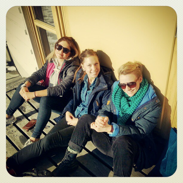 Även i skolan på lunchen gäller det att passa på att avnjuta solens värme och energigivande boost 🙂 Sol-flickor blivande fysioteapeuter om bara 3 månader! SJUKT 🙂