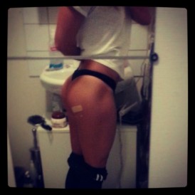 På tal om shrugs! Sista jag körde det så uppmärksammade jag BAKsidan av att ha en stor gluteus 😉 hahah… FRIKTIONSKADA!!!!! Aoooch 😀 Så det var bara hem och plåstra om skinkan, kände mig lagomt hardcore, haha!