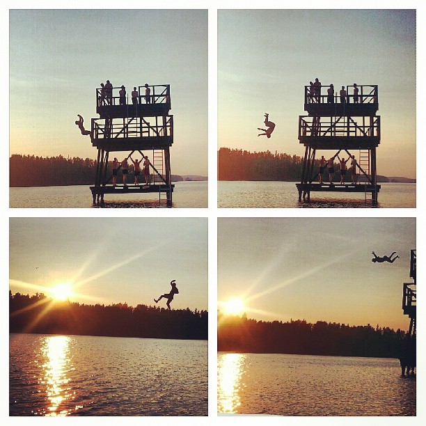 Såhär vackert var det iaf när jag och min kompis var och kvällsbadade på en gammal badplats vi alltid badade på när vi var yngre, det var pojken i honom som kom fram igen när han stolt hoppade runt bland 13 åriga pöjkar som jublade till hans.. ehhm.. någotsånär liknande simhopp varianter 😉