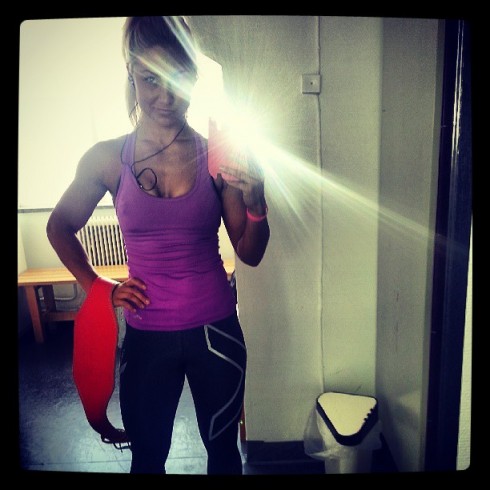 Jag käkade dock inte en enda gång på festivalen utan valde att käka min lunch hemma och sedan på natten när jag kom hem. Så bättre mathöll jag helt klart än vd jag först trodde. Dessutom hann jag åtminstone klämma in några pass under festivalen, bland annat ett marklyftpass i mitt nya ubersnygga bälte jag fick skickat till mig från godingarna i Unbroken Design. Ni vet de som också hade dessa supersöta små smycken med kettelbells och viktskivor m.m . Givetvis fick jag ett rosa/korallfärgat 😉 Rktigt sprudlar energi av det och det lyser upp t o m det gråaste av hardcoregym 😉