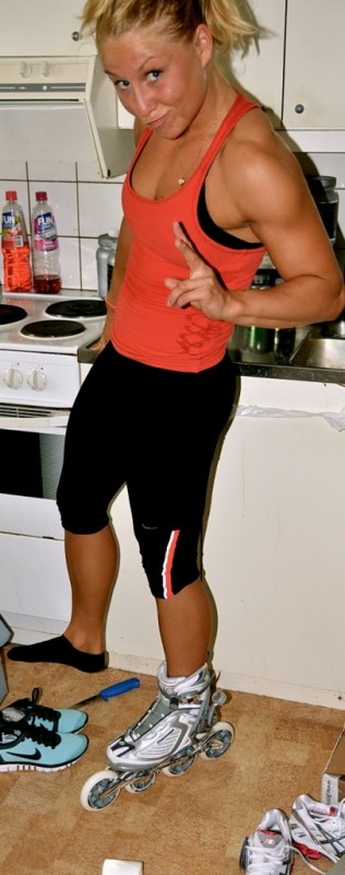 Mina inlines, gymskor,löpskor ja allt var prima prima!! Vad glad jag blir<!!! Kolla vad läckra, bortse från att jag ser ut som 7 svåra år då jag kommer direkt från ett cirkelpass från helvetet svettig och unken,, men va tusan, vad gör det!! 😉
