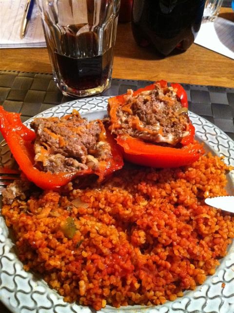 Bland det godaste jag ätit. Köttfärsfyllda grillade paprikor med bulgur