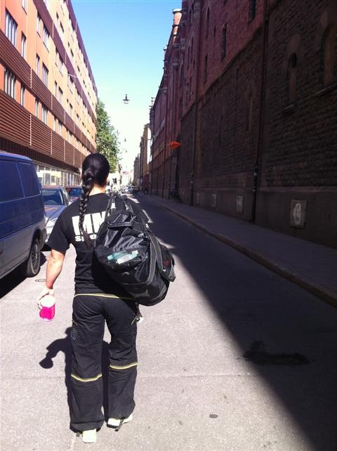 På väg in och gymma fast solen gassar!