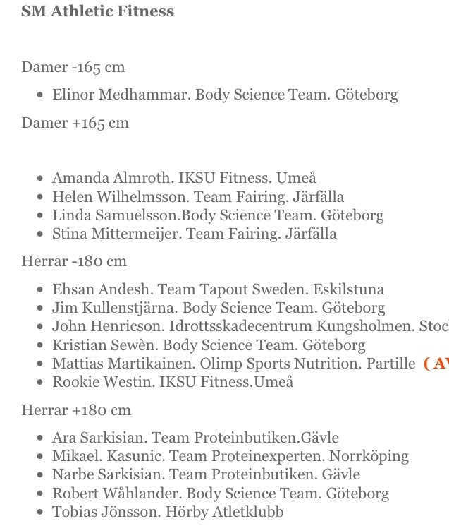 Så ja då är startfältet klart till SM i Karlstad…..blev inte så många tyvärr men ett riktigt vasst startfält. Kommer bli väldigt små marginaler som avgör hela tävlingen och redan första bedömningen med fysiken är grymt viktigt att man är med i toppen……
