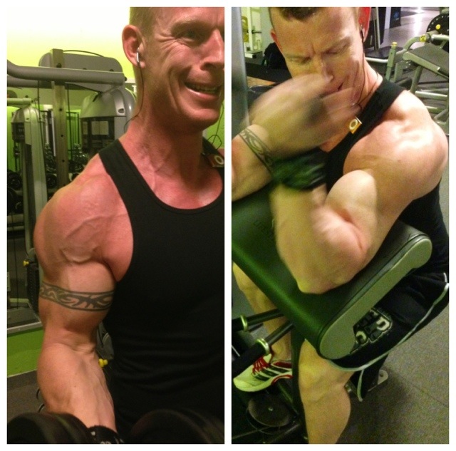 Fredagen: Ett morgonpass 3 övningar biceps (13 set) och avslutade med vader. Eftermiddagen bestod i intervallträning, först två intervaller på rodden följt av 1 minuts intervaller under 25 minuter på löpband.
