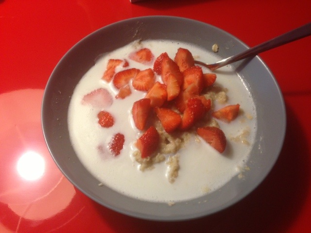 Havregrynsgröt med Body Science dietfuel vanilj och lite jordgubbar på det MUMS!!!