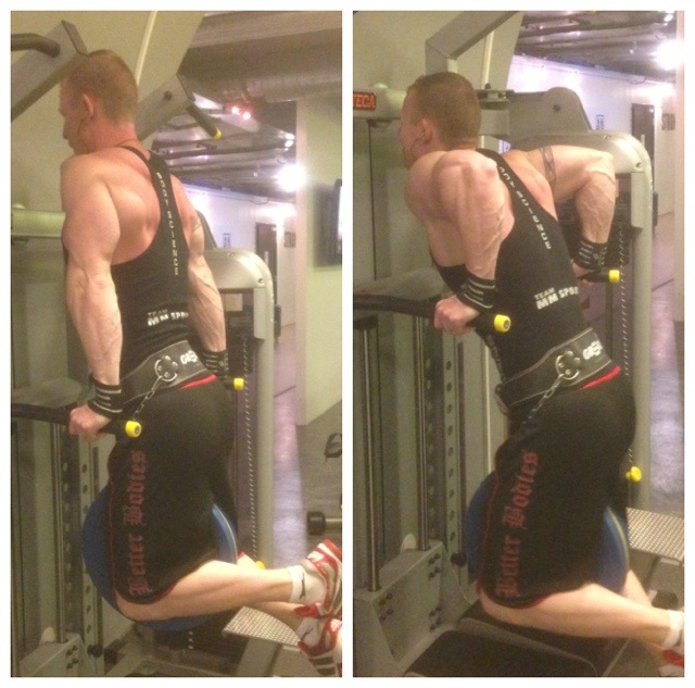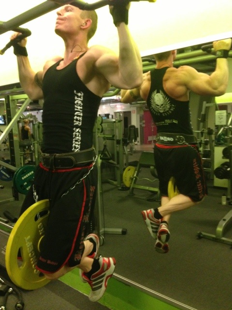 Fredag 19/7: PW på morgonen och ett chins/dipspass på eftermiddagen. Mjölksyra som följdes upp med ett par viktade set på slutet.