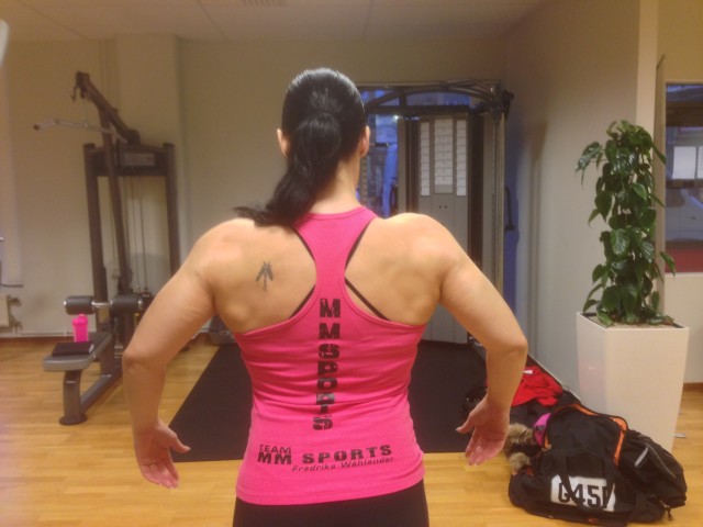 Trots dåligt ljus på gymmet och lite fel i posen så ser man tydligt att Fia utvecklas varje dag nu när hon äntligen fått vara skadefri….båda gott för dieten och scenen 5-6 september.