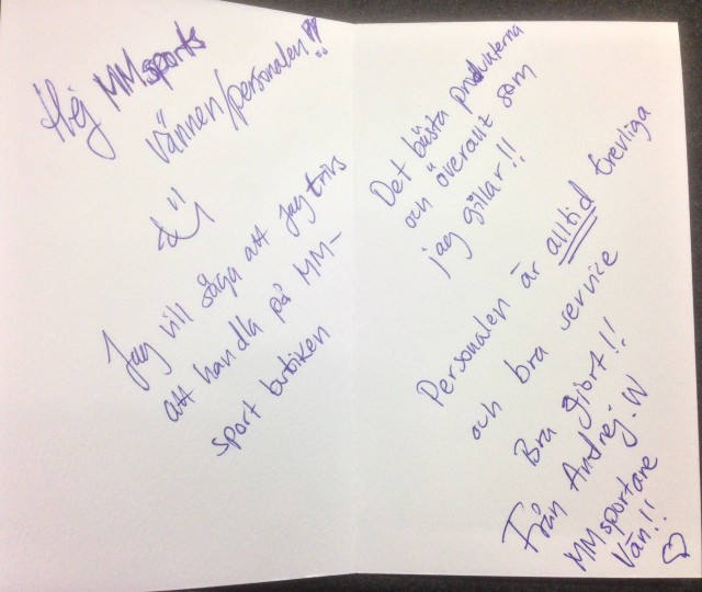 och kort…….värmer ens hjärta med sån bekräftelse…STORT TACK Andrej du verkligen förgyllde våran dag.