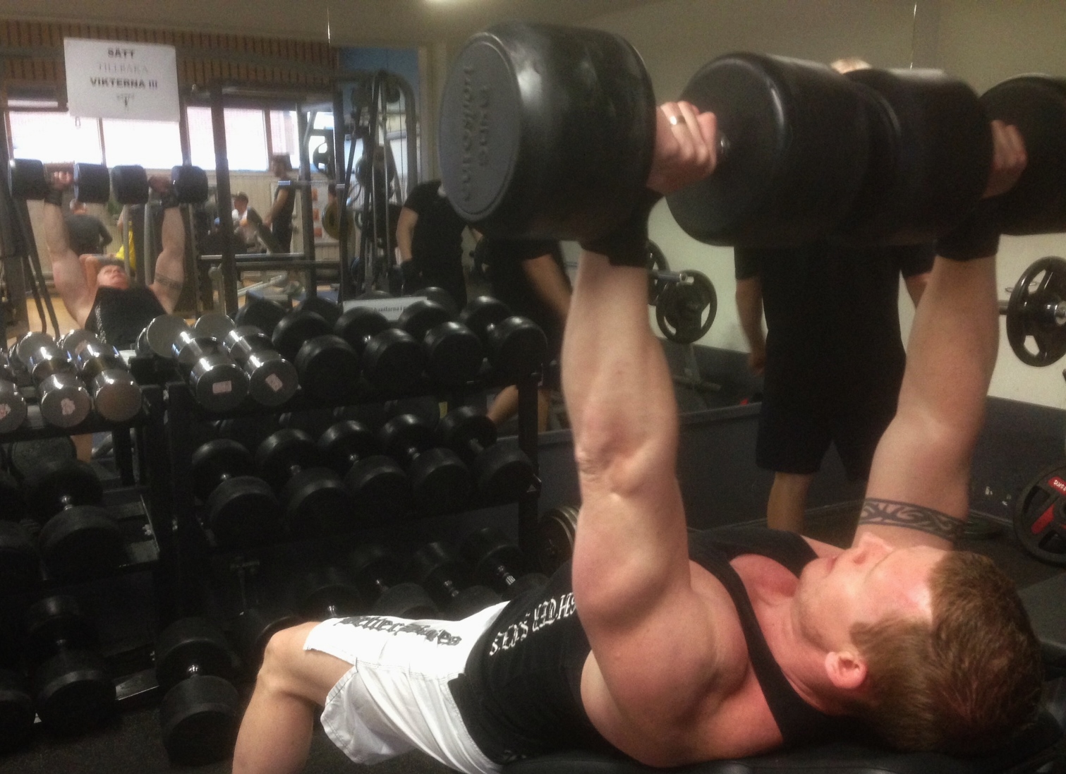 Bröst var på schemat idag och dessutom lite extra baksida axlar och lats för mini-meeeee.