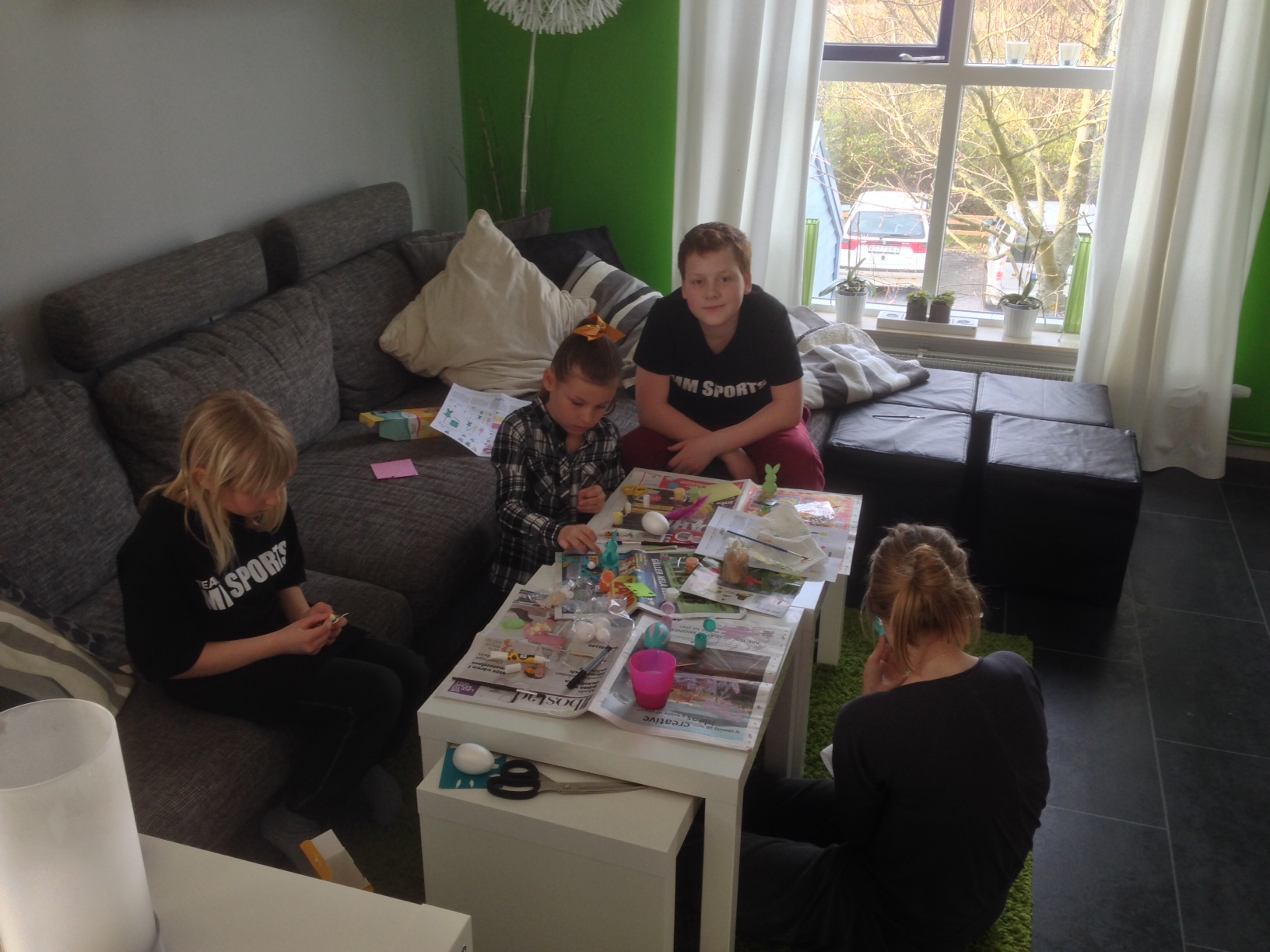 Dagen avslutades med lite kvalitetstid med barnen och de pyssla i flera timmar…påskpynt :-).