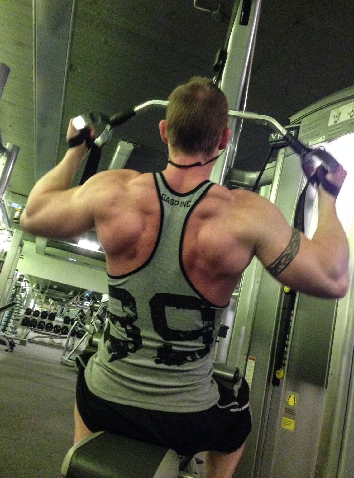 Vinkelstångs latsdrag framför 5 set…….bra tryck i latsen av denna övningen.