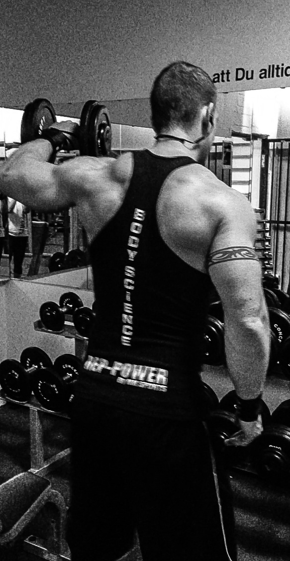 Avslutade passet med shrugs skivstång och stående vadpress…..härligt tryck i både vaderna och axlarna…visst är det den goaste smärta man kan ha när man just kör ett axelpass, ja knäpp är man nog men ha ha gött är det.
