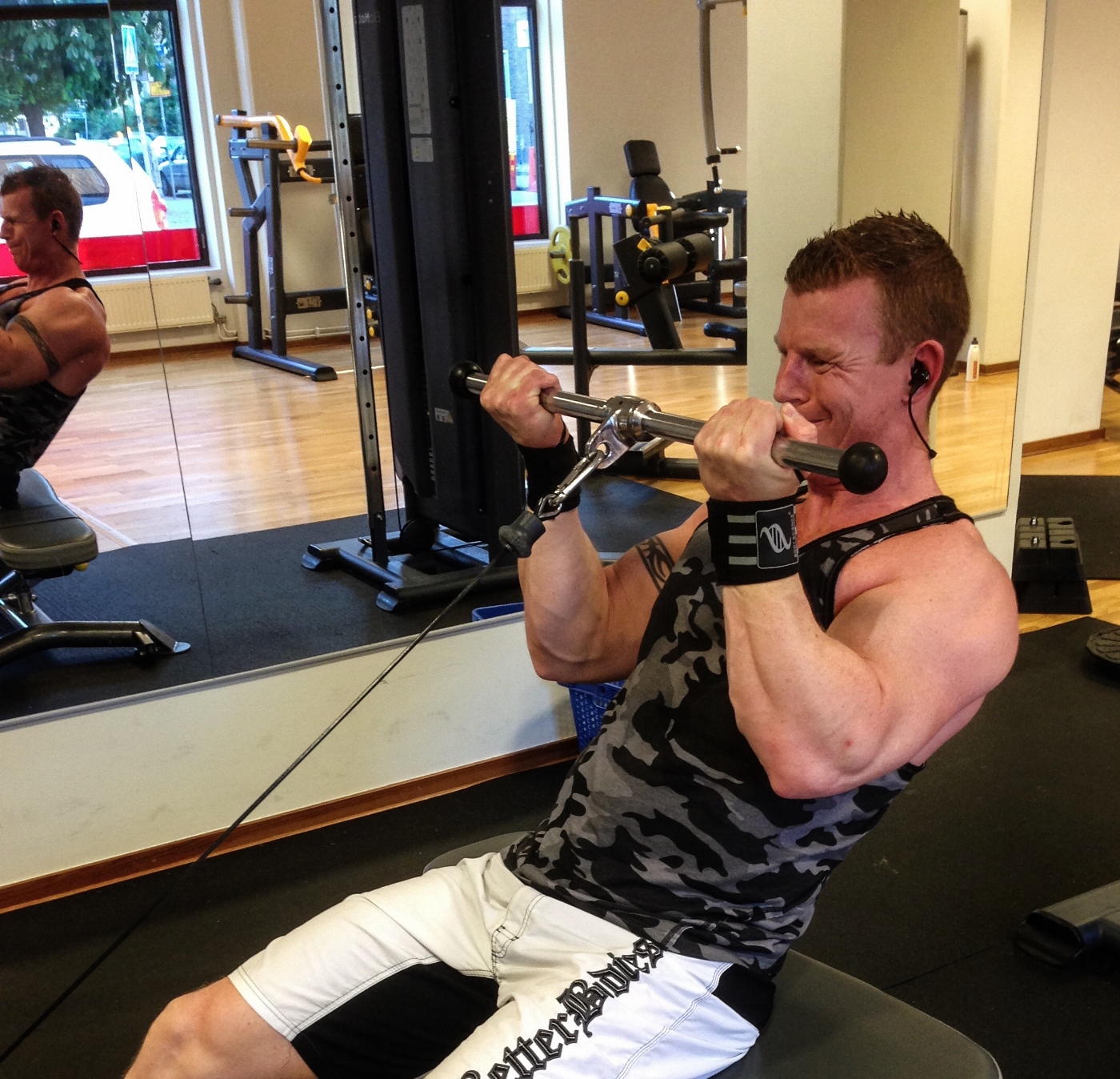 Tricepsens sista övning var push-down med rep för att pumpa ut det absolut sista i armarna. Pump och tryck så det heter duga :-). Helt slut i kroppen efter passet men sjukt nöjd, ligger riktigt bra på det när det kommer till min ”övervikt” innan diet och styrkan som visar sig i extravikts övningarna….nu hoppas jag bara att det kommer omvandlas och sedan visa sig när det kommer till maxantalet i båda övningarna ju närmre tävling man kommer, hur som haver så bådar det gott i alla fall.