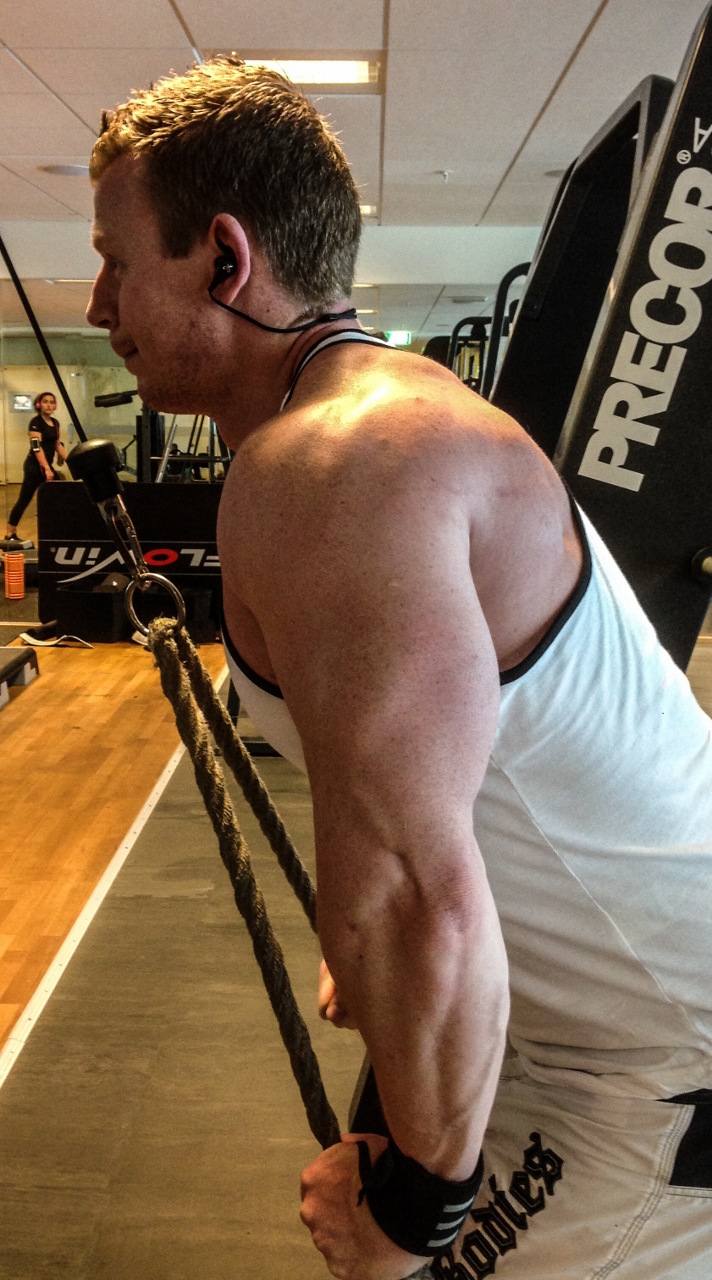 Blev efter detta biceps och triceps. Biceps blev det vinkelstång stående och sittande på bänk i kryssmaskin, se tidigare blogg för utförande.