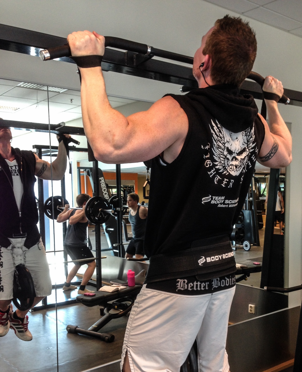 Explosiva chins är ett bra sätt att komplettera upp chinsträningen med, innebörden är att man siktar på ett antal man vill göra med eller utan vikt och sedan håller det antalet hela tiden….t ex i detta passet körde jag med +10kg och skulle göra 12 reps/set då jag har mjölksyra…första seten är lätta då man inte kör max ut men det blir jobbigare och jobbigare att hålla antalet till det ju fler set man kör…….