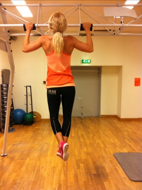 Laddade sedan igår kväll. Jag visste vad jag behövde göra idag. Det pirrade tom lite i magen vid blotta tanken på att jag skulle genomföra mitt första chinspass på två månader. Livrädd nästan. Prestationskrav. Visste ju att det skulle kännas ovant och tungt men det är okej första passen. Måste bara ta mig igenom dem. Laddade upp med halv dos vip-x och massbuilder och min vanliga ritual innan jag kör chins.