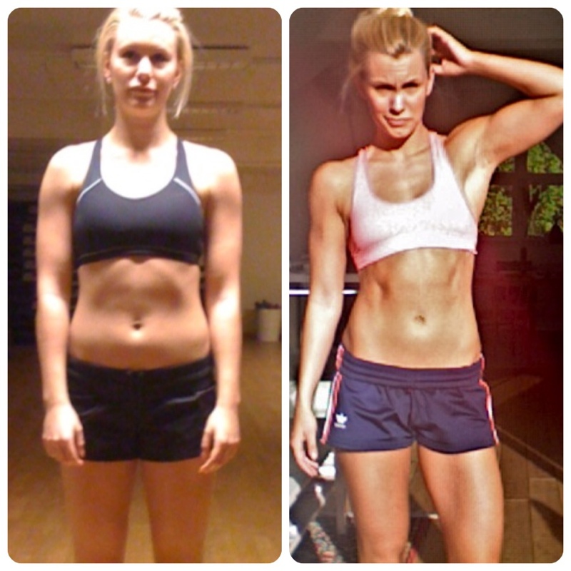 Slängde upp den här igen i veckan, fast båda bilder bredvid varandra. Lättare att se skillnaden kanske? Mindre än ett års träning bakom förvandlingen. Får många frågor om hur jag gjort osv och det ser ni ju i bloggen;) Styrketräning är a och o om du vill forma kroppen. Det handlar om byggning, vare sig ni vill tro det eller ej. Er utmaning idag: Gissa min vikt före och efter. Alltså vad tror ni att jag väger på bild 1 och bild 2. Viktskillnad mellan bilderna? Var inte rädda för att gissa, vikten är inget issue of mine;)