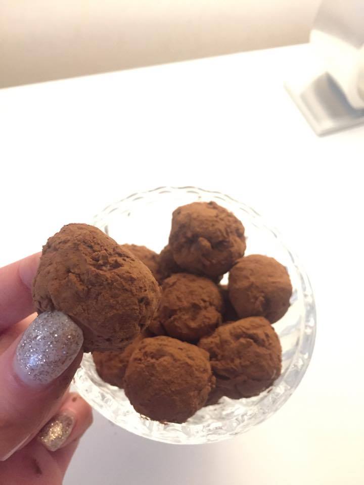 Blanda samman alla ingredienser tills de går att rulla bollar av den, är ”smeten” för torr så blanda i lite mer mjölk. Gör små bollar och rulla dom i kakao, klart!