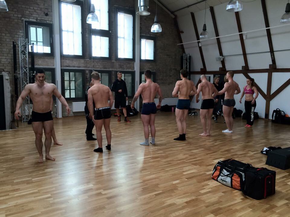 Efter det var det dags att kasta kläderna och öva posering, lagom kul att ställa sig i line med grabbar som ska tävla om ett antal veckor!