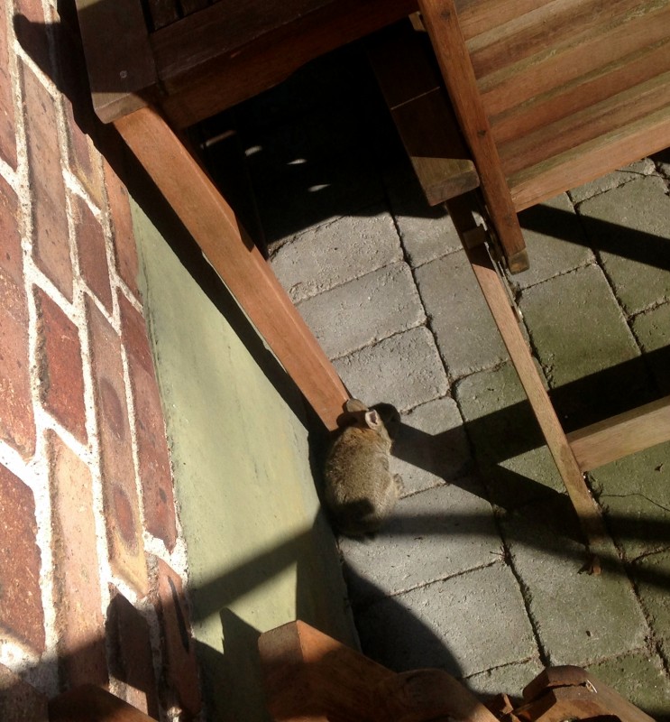 Fick rädda en stackars kaninunge oxå som annars hade blivit kattmat åt grannkatten… såå fin.. ville klart klappa den lilla stackarn men en bild på avstånd var allt jag hann med .