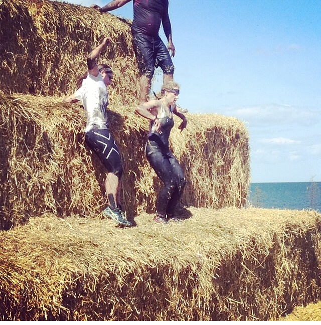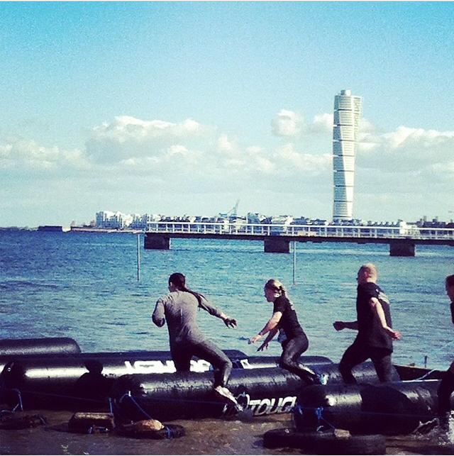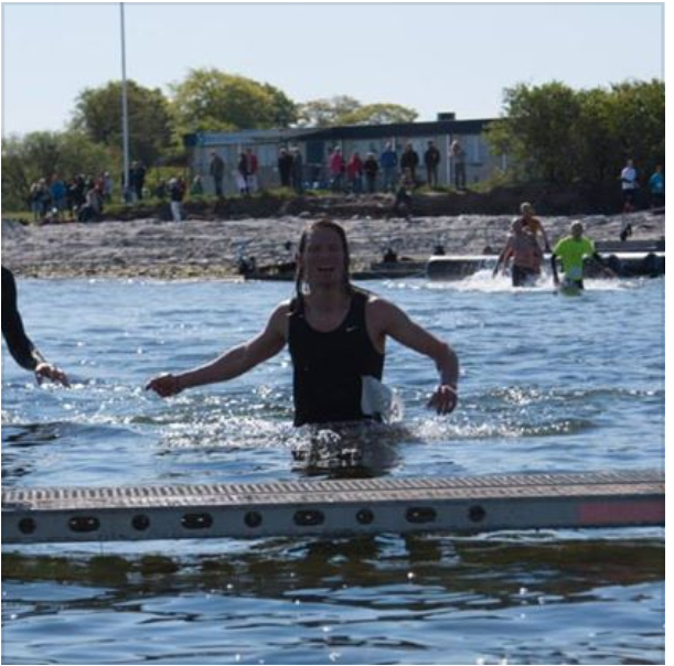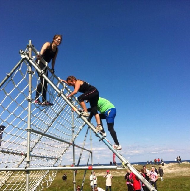 Jag har genomfört en av nordens svåraste lopp, 8 km löpning i delvis svår terräng, sand, meterdjupt vatten, gyttja, terränghinder, monkeybar, ringar över vatten, höga ramper, sprungit över däck, klättrat i nät, klättrat upp och ner för stegar, hoppat över storbalar halm, osv osv… så JÄVLA stolt och var i mål på 1,04. mitt mål var egentligen under timmen men har sprungit som längst 5 km vid 5 tillfällen inför dethär.. och jag kom på 60 plats utav 1094 kvinnor/tjejer/damer..