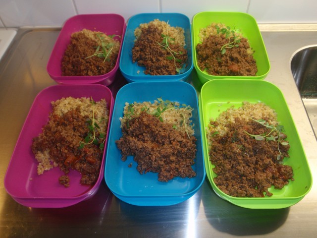 Matlagning inför veckan.. variation? nä.. lättast o äta samma lunch hela veckan.. v 38 = Bulgur med Chili/Cayenne/basilika kryddad Nötfärs.. ( starkt 🙂 ) !!